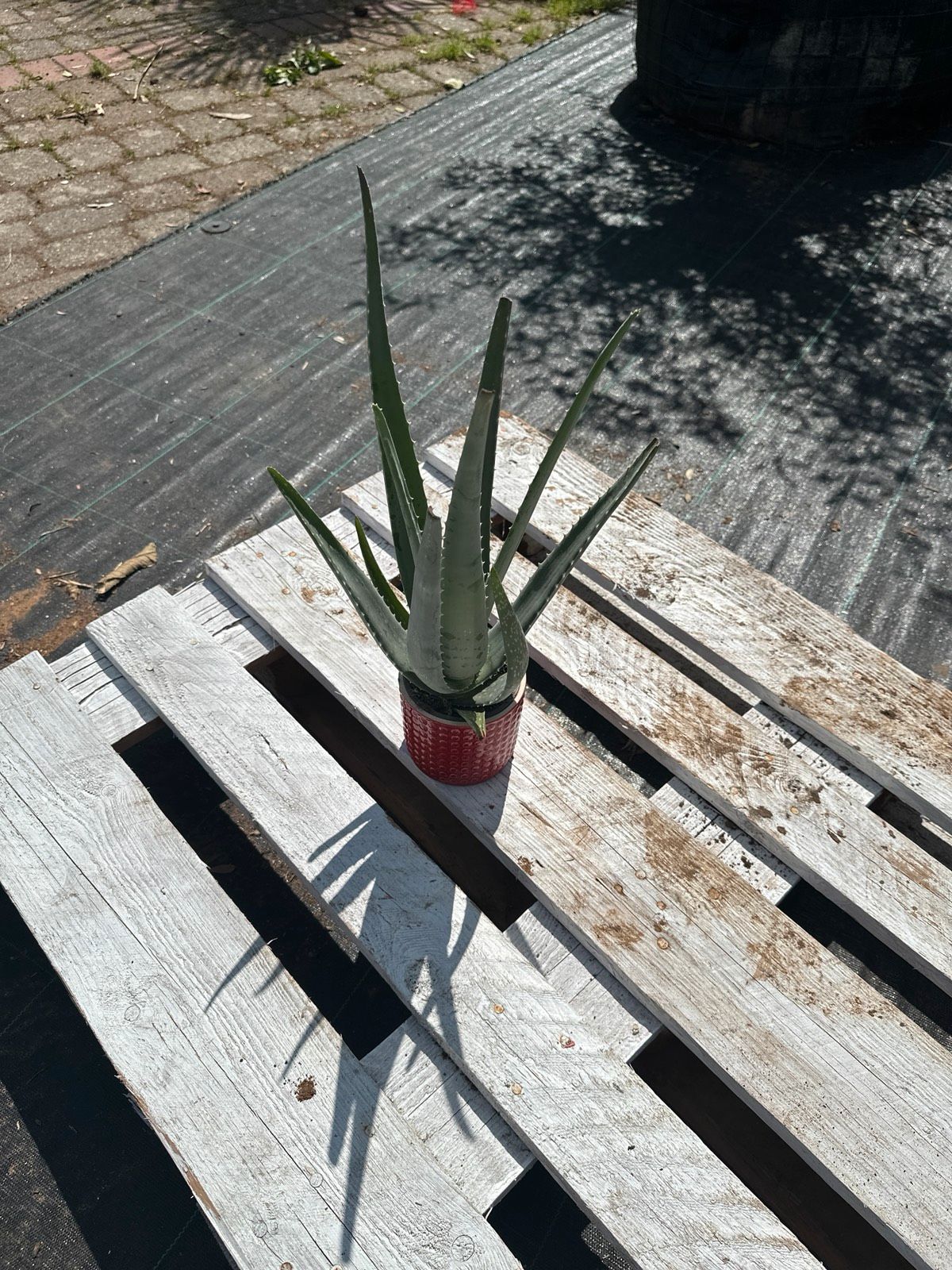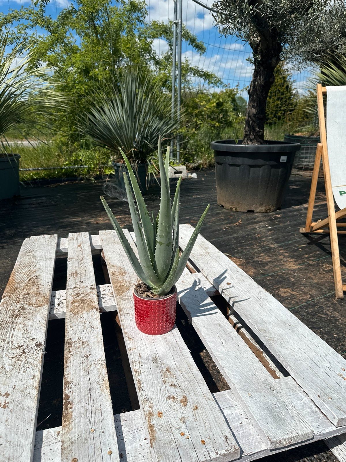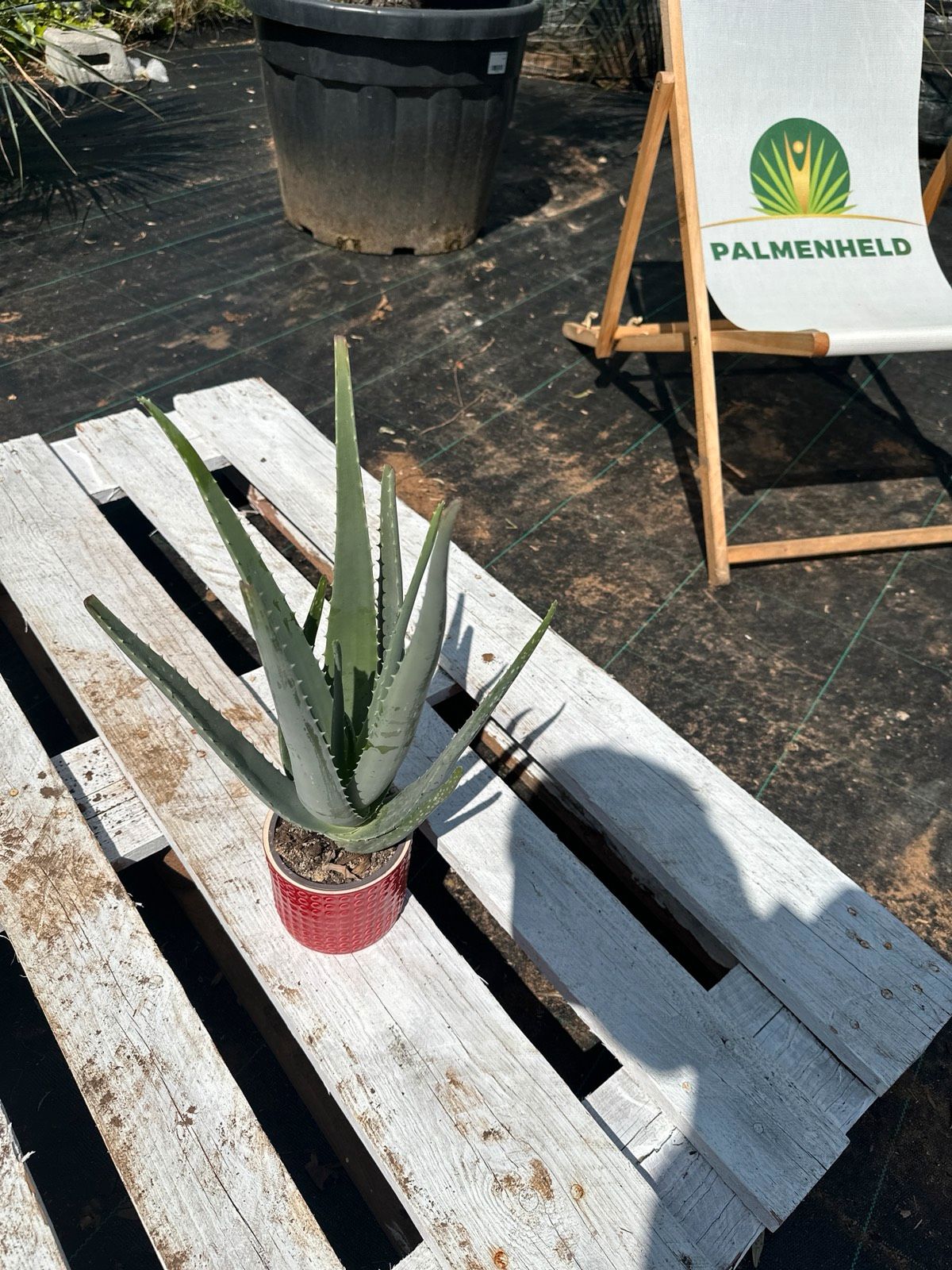 Pflegeleichte, dekorative Heilpflanze mit fleischigen Blättern – ideal für Fensterbank, Küche, Büro oder Wohnzimmer. Geliefert im hochwertigen roten Porzellan-Deko-Topf. Lieferhöhe 40–60 cm (inkl. Topf).