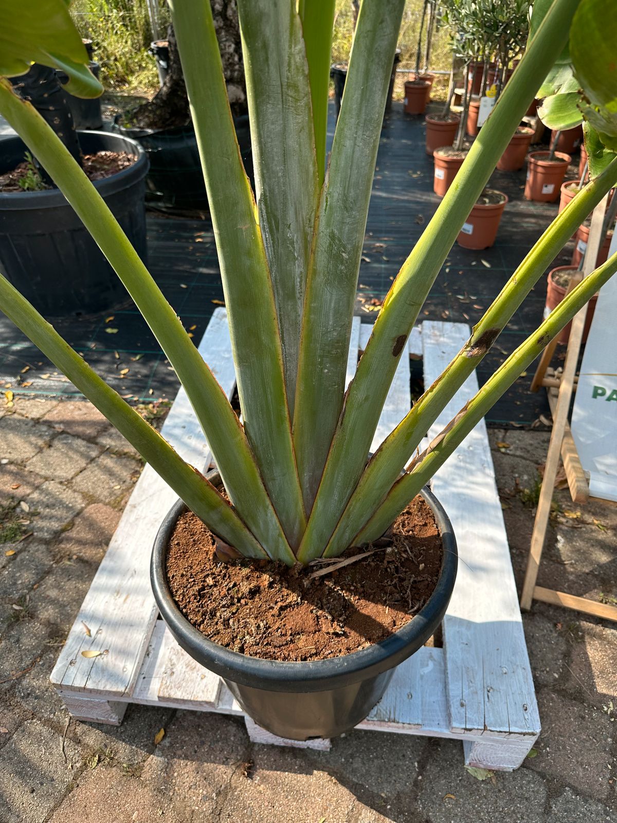 - Edle Anmutung: lange, ledrige Blätter auf kräftigen Blattstielen
