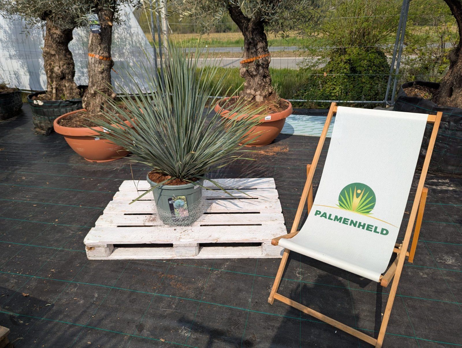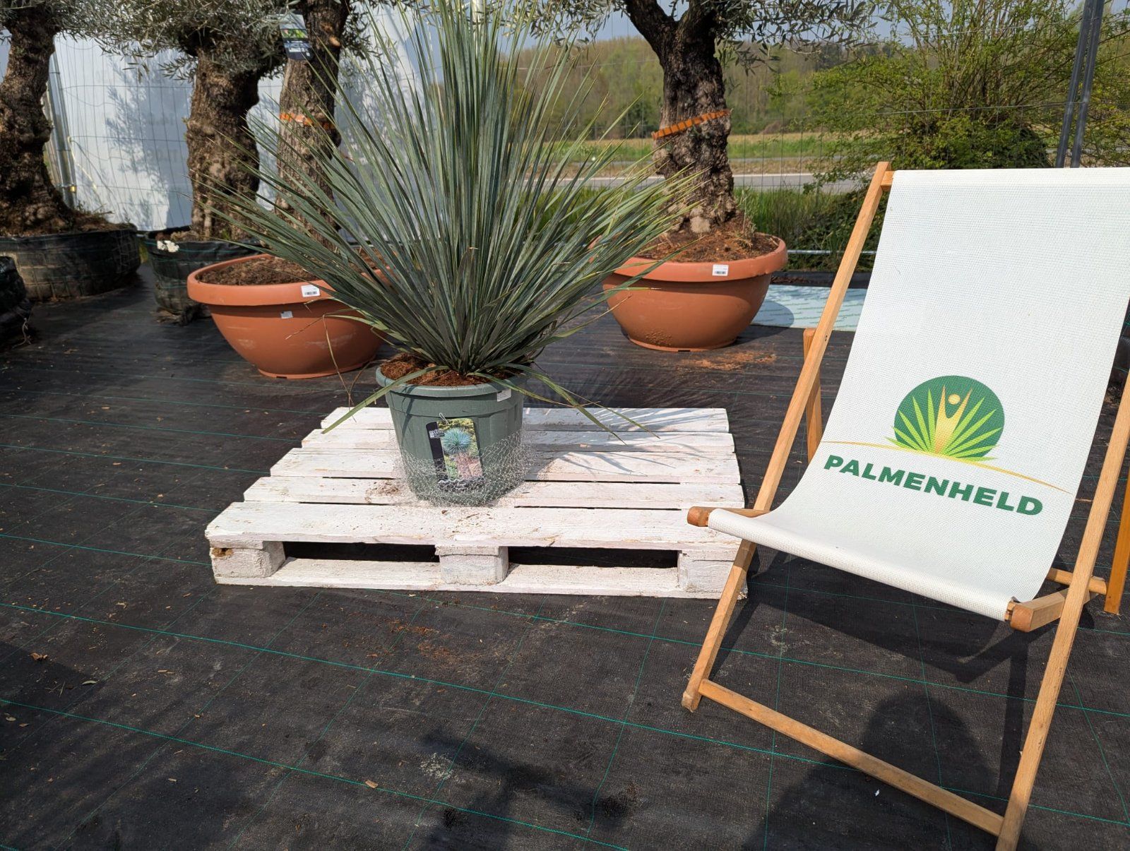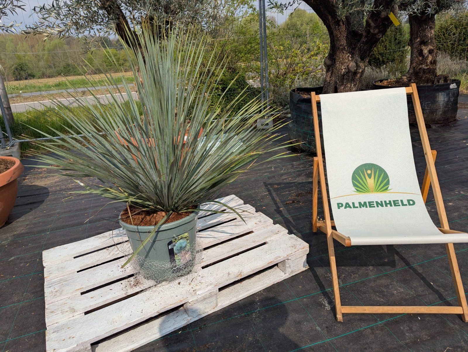 - 1× Blaue Palmlilie (Yucca rostrata), 90–120 cm (inkl. Topf), mit sichtbarem Stammansatz