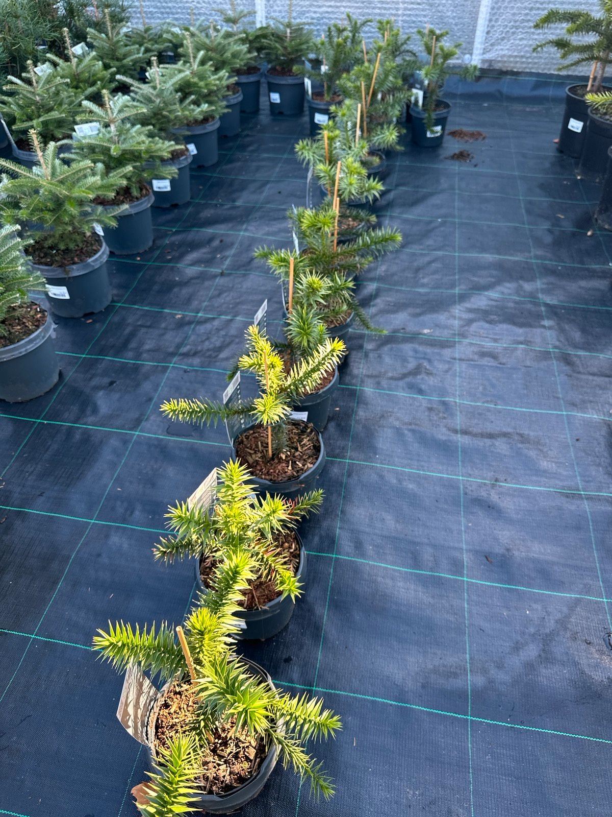 Seltene, immergrüne Konifere mit markanten, schuppenartig angeordneten, stacheligen Nadeln und streng symmetrischem Aufbau. Das angebotene Jungexemplar hat eine Lieferhöhe von 25–45 cm (inkl. Topf) und entwickelt sich langfristig zu einem außergewöhnlichen Solitär im Garten.