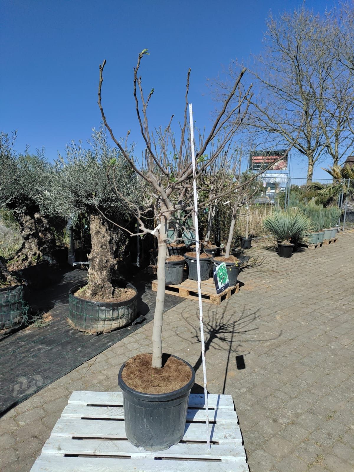 Stattlicher, mediterraner Obstbaum mit großen, dekorativen Blättern und aromatischen, essbaren Früchten. Das angebotene Exemplar hat eine Lieferhöhe von 200–250 cm (inkl. Topf) und zeigt einen kräftigen, verzweigten Wuchs – ideal für sonnige, geschützte Standorte im Garten oder für große Kübel.