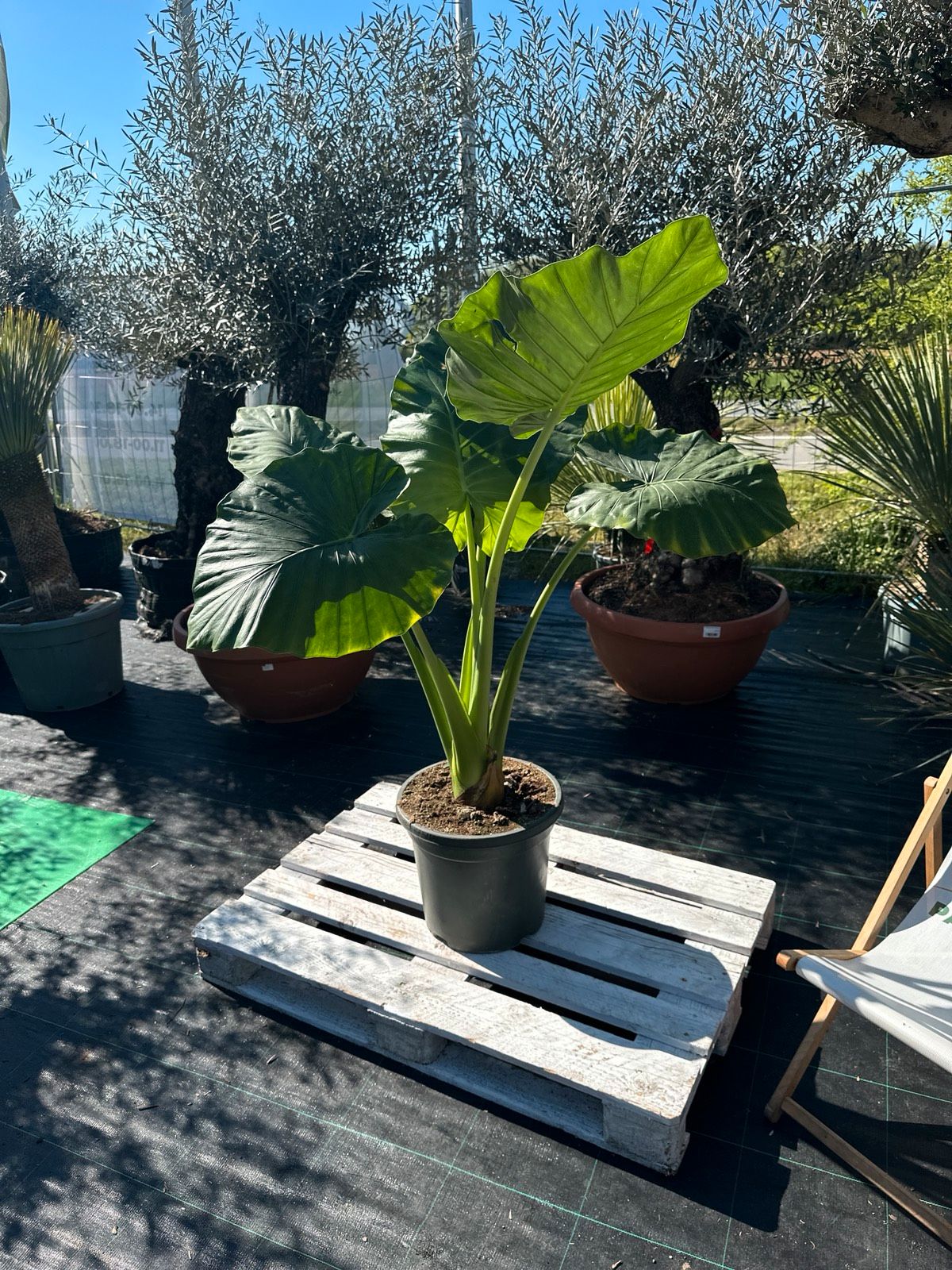 - 1× Elefantenohr (Alocasia macrorrhiza), 120–160 cm (inkl. Topf)