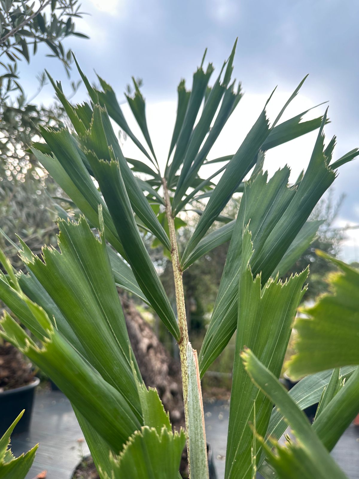 - Wuchsform: schlanker Einzelstamm, kompakte Krone mit fein gefiederten Wedeln