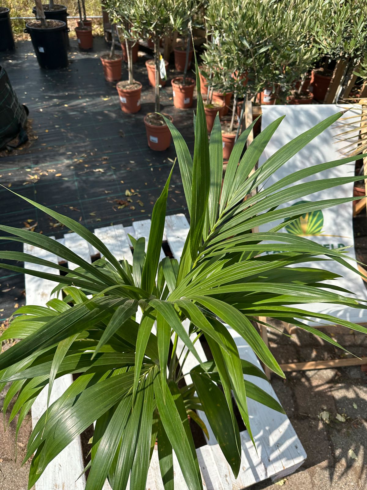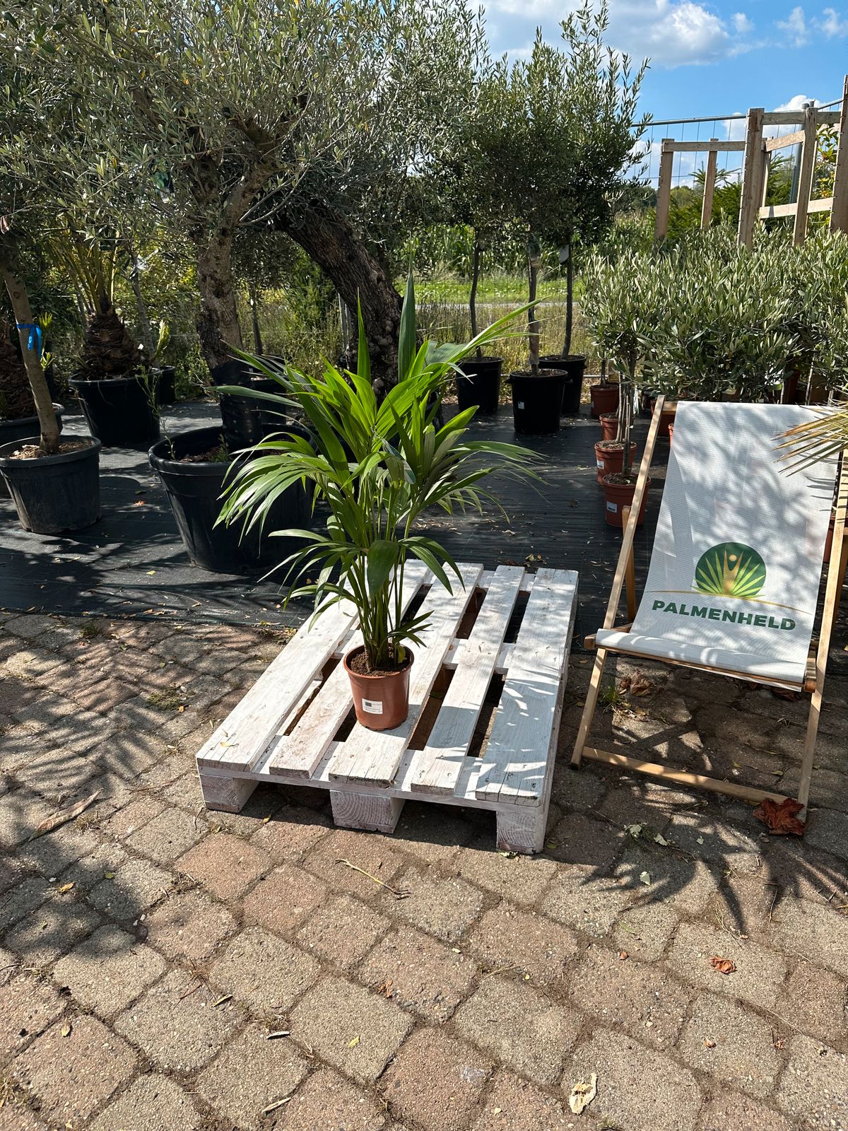 Elegante Zimmerpalme mit sanft geschwungenen, tiefgrünen Fiederblättern – pflegeleicht, robust und langlebig für Wohnung, Büro oder Wintergarten. Lieferhöhe 80–100 cm (inkl. Topf).
