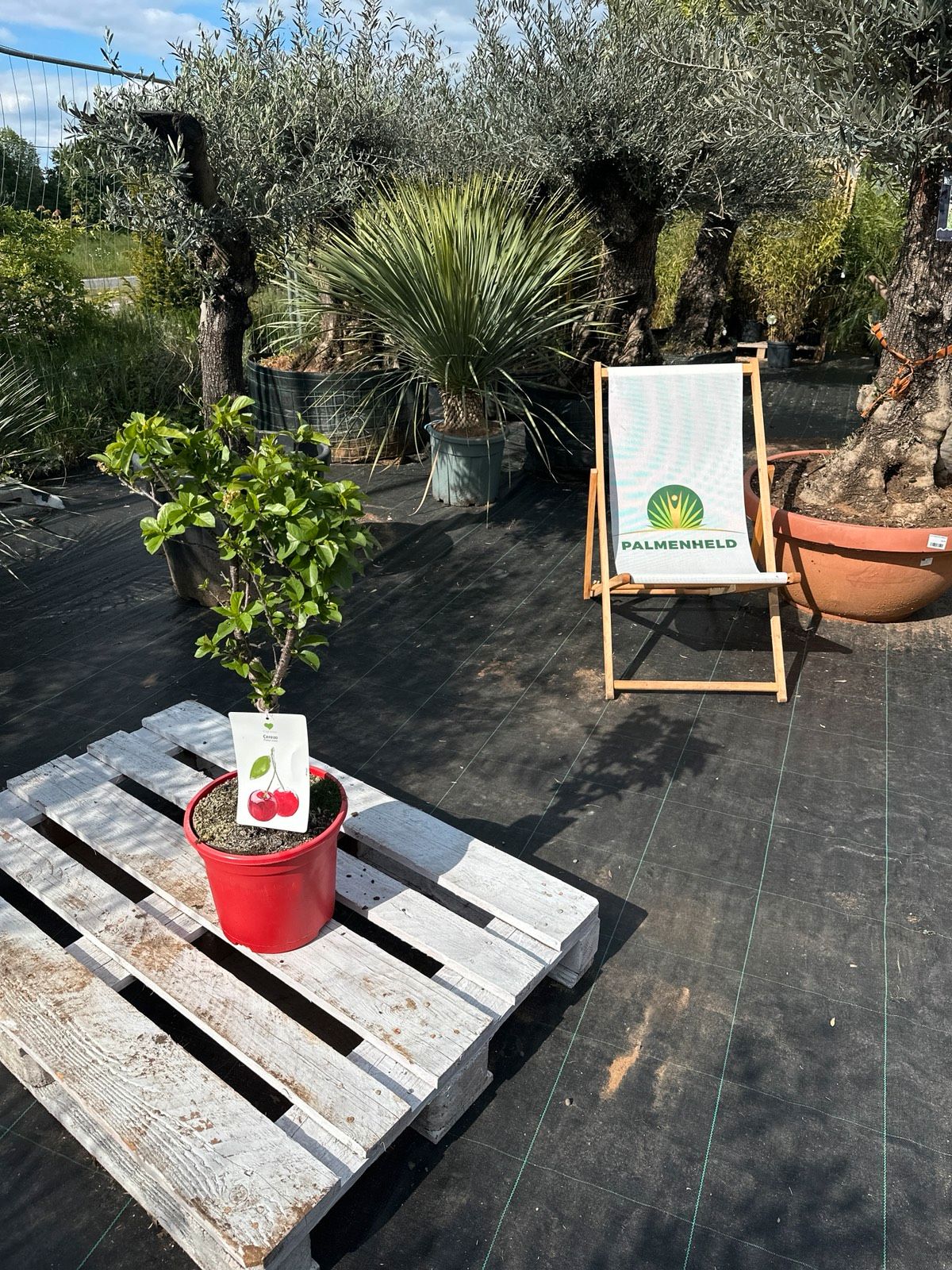 - 1× Kirschbaum (Prunus avium), 70–100 cm (inkl. Topf), junge Hochstamm-Erziehung