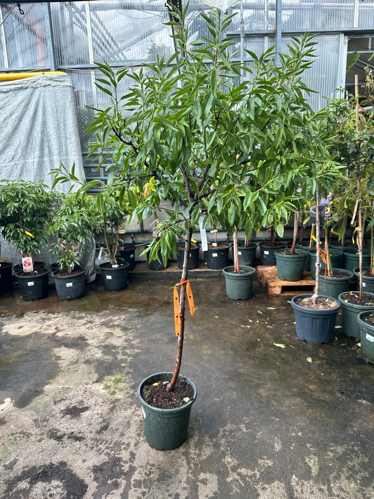Traditionsreicher Obstbaum mit spektakulärer Frühjahrsblüte und aromatischen Mandeln – bringt mediterranes Flair und Struktur in den Garten. Lieferhöhe 170–200 cm (inkl. Topf).