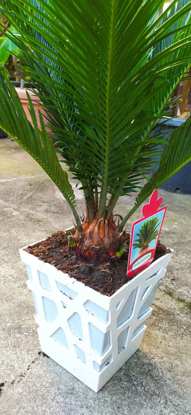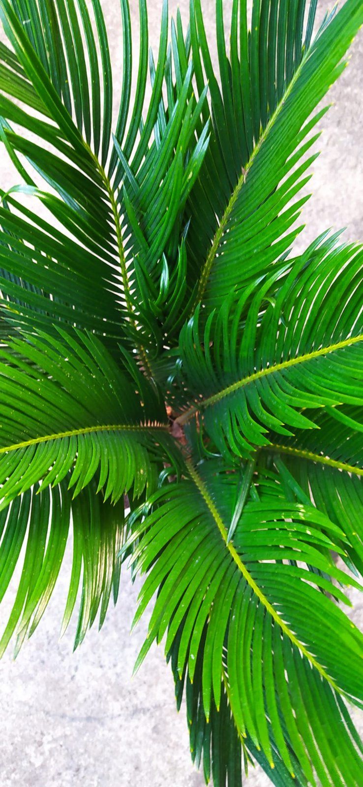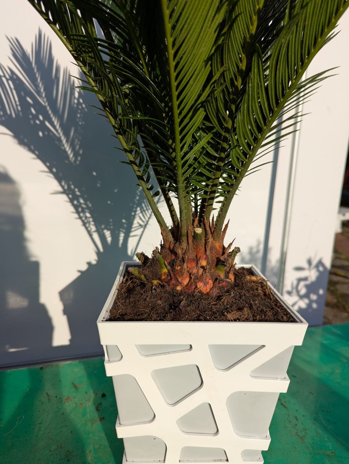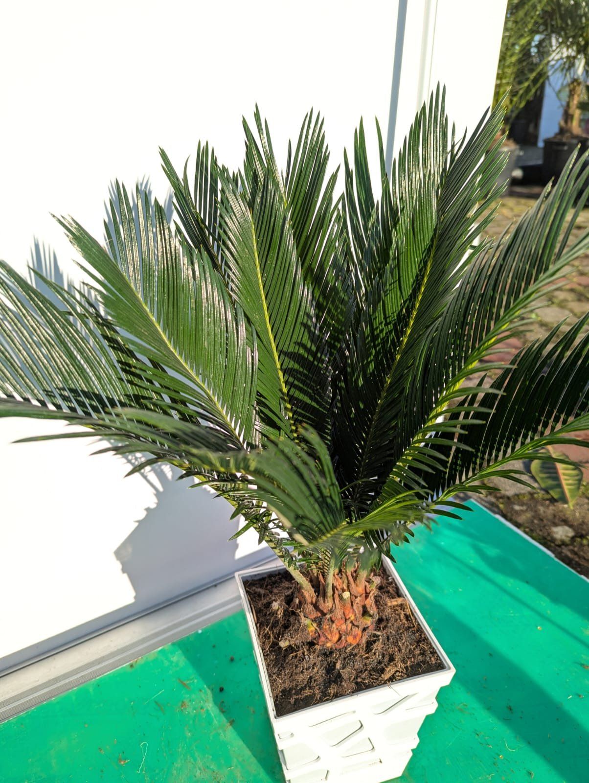 Urzeitlicher Exot mit palmenähnlichem Wuchs und glänzend gefiederten Blättern – robust, langlebig und ideal für Wohnräume, Wintergarten & Sommerterrasse. Lieferhöhe 55–70 cm (inkl. Topf).