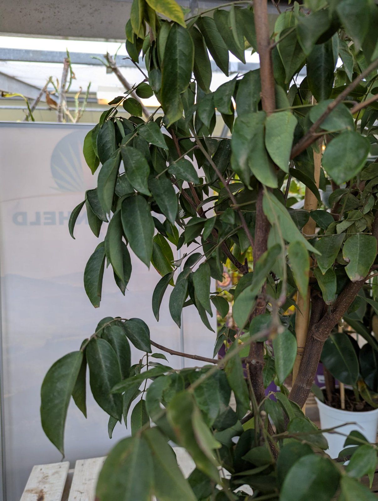 - Wuchsform: immergrüner, dicht verzweigter Kübelbaum