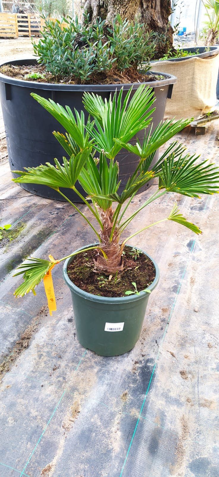 - 1× Wagner-Hanfpalme (Trachycarpus wagnerianus), 75–110 cm (inkl. Topf), Stamm ca. 10–20 cm