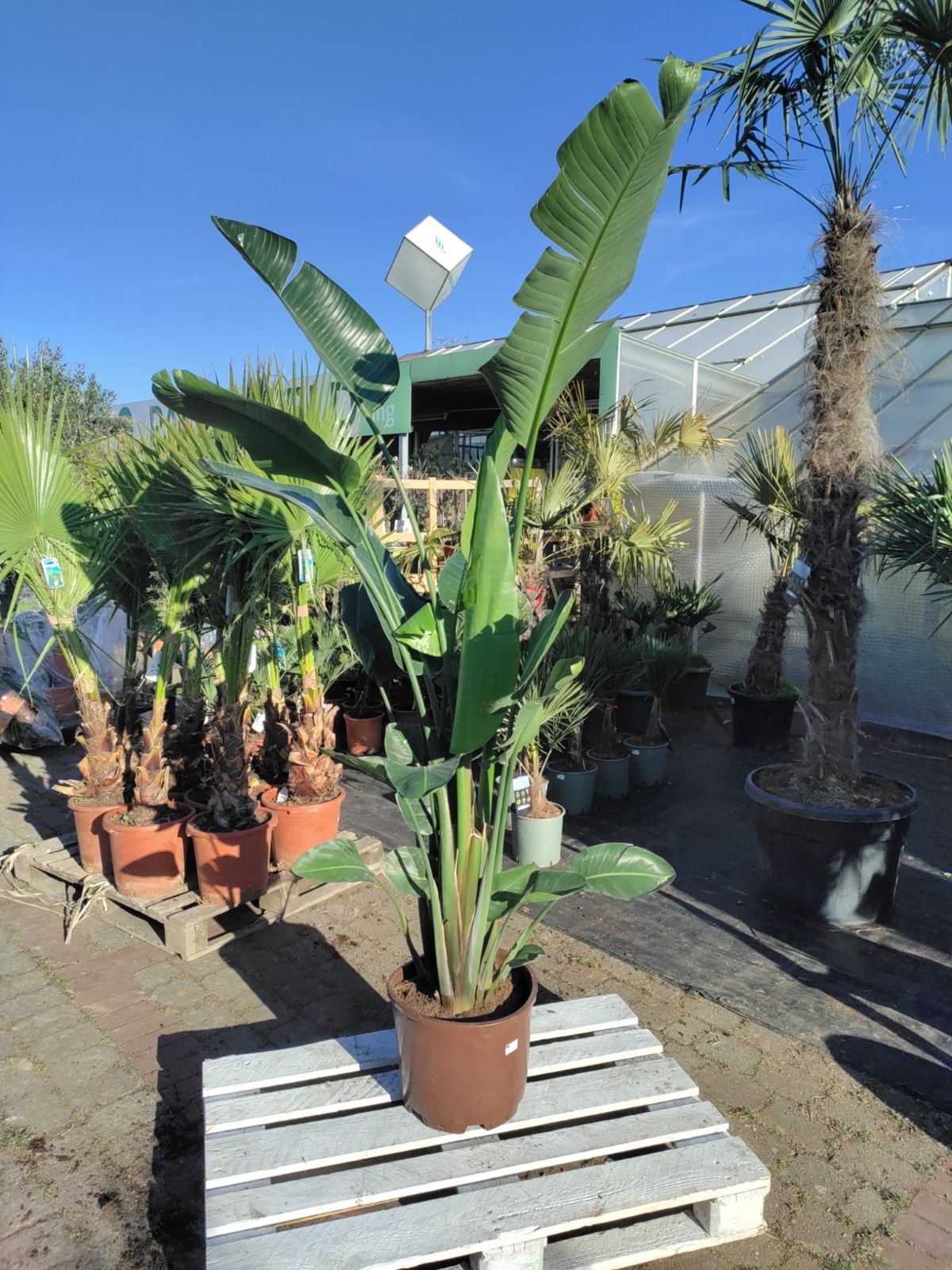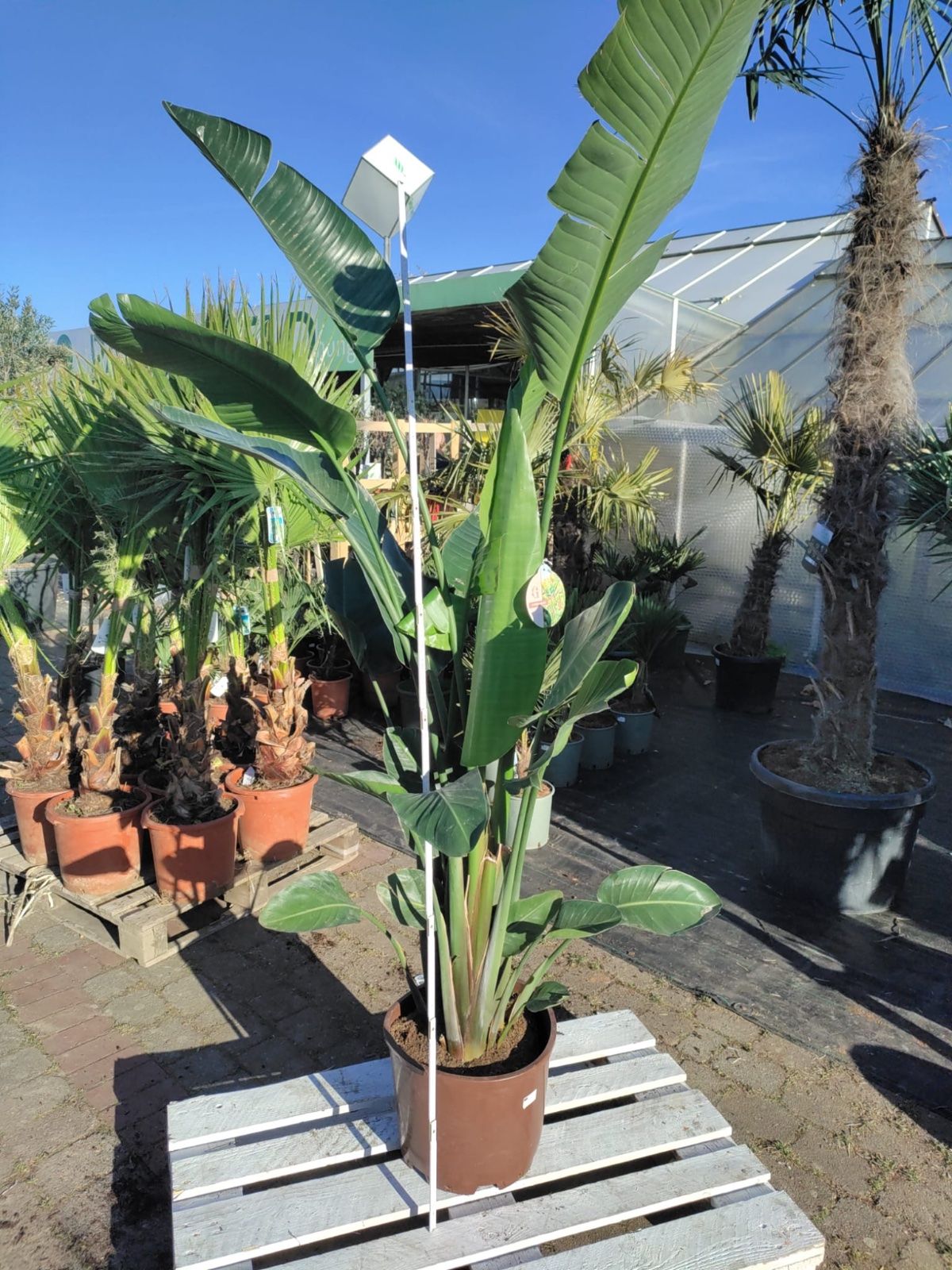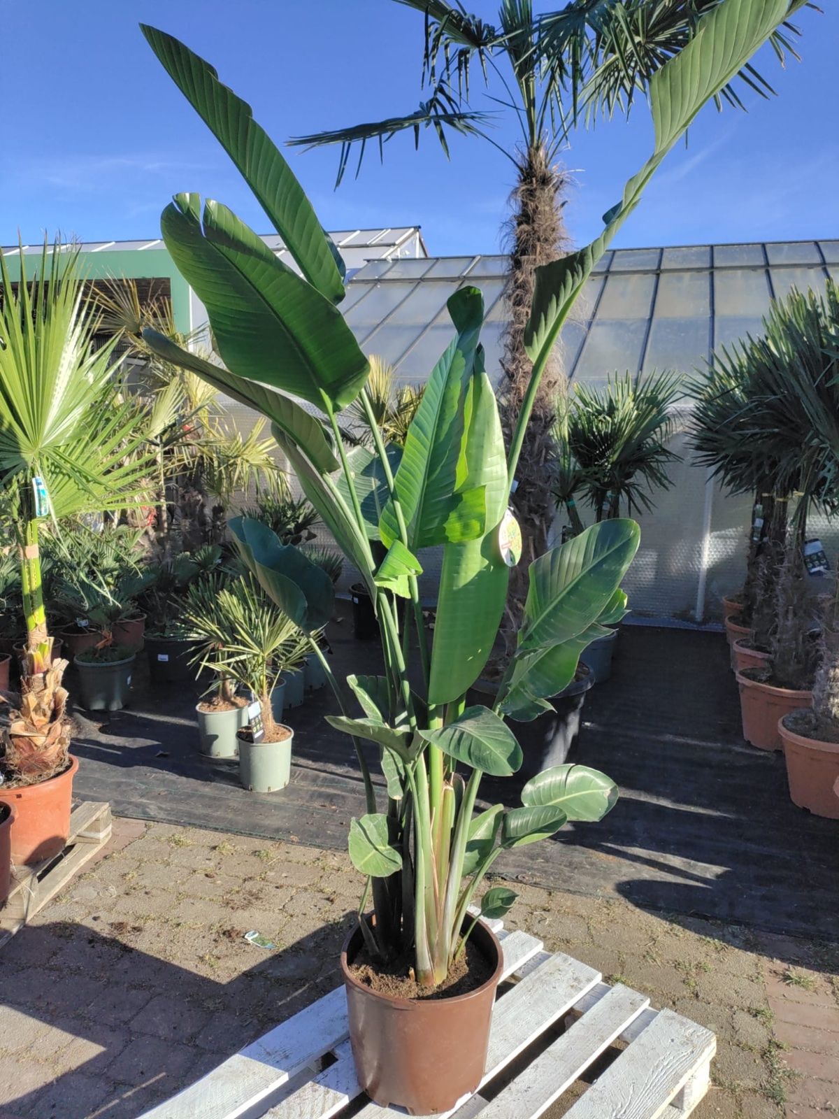 - 1× Weiße Paradiesvogelblume (Strelitzia nicolai), 200–250 cm (inkl. Topf), meist mit 2–3 Pflanzen pro Topf