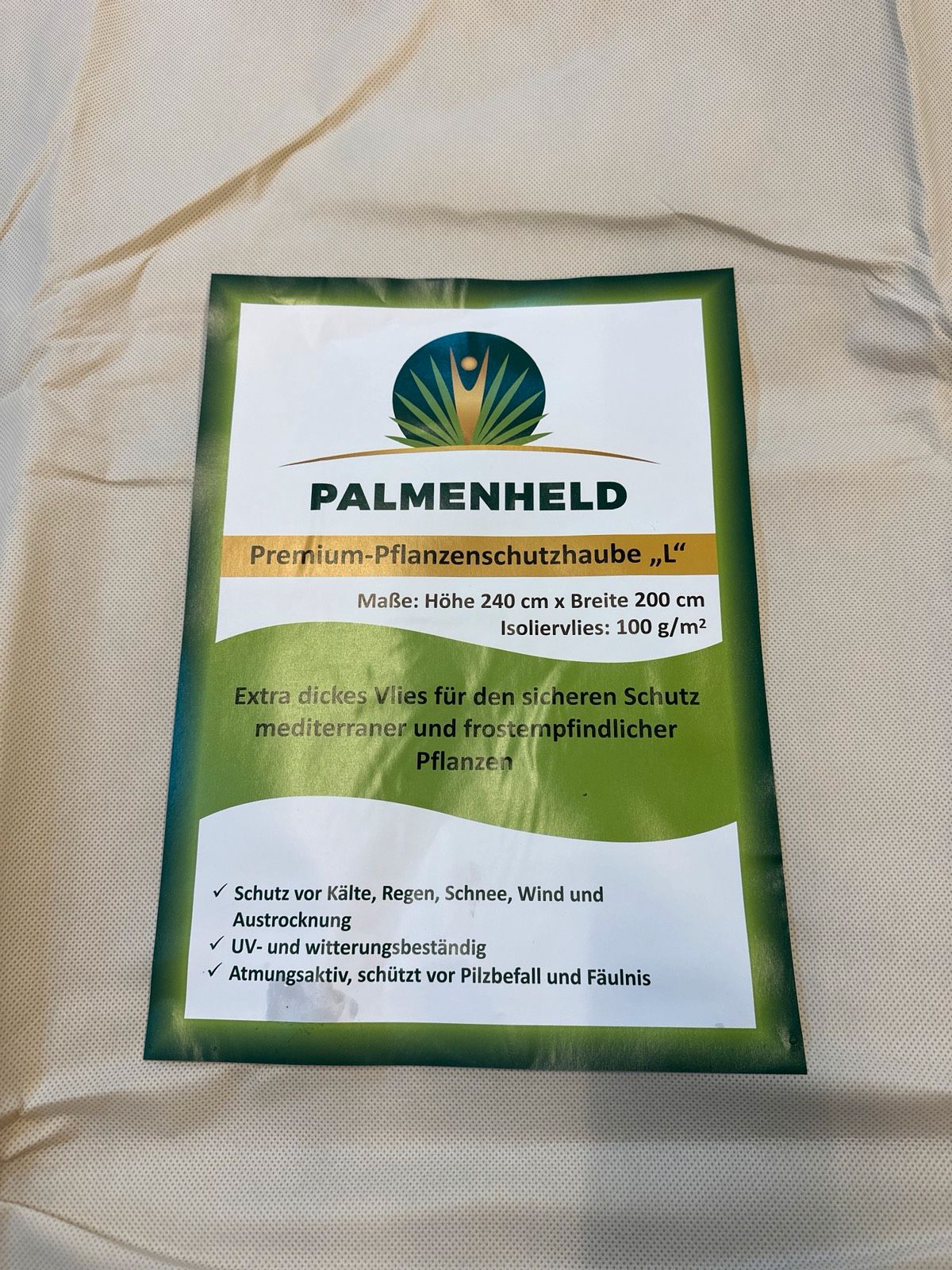 Extra große Premium-Schutzhülle aus atmungsaktivem Vlies – schützt hohe Palmen, Oliven & mediterrane Kübelpflanzen zuverlässig vor Frost, Wind und Wintersonne. Größe 240×200×200 cm.