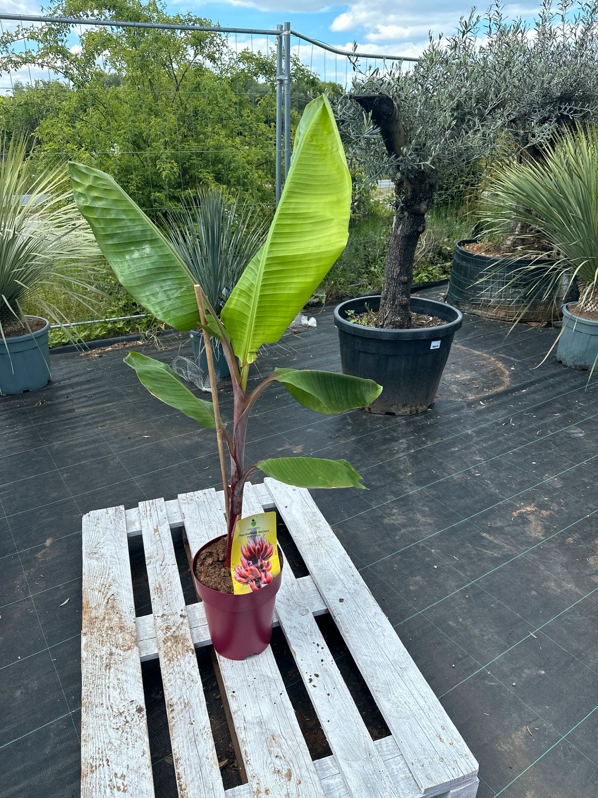 - 1× Zwergbanane 'Red Dacca' (Musa acuminata), 110–150 cm (inkl. Topf)